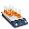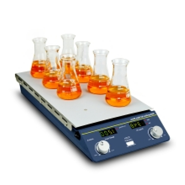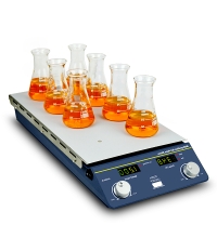 電磁攪拌器的工作原理是由微電機帶動耐高溫強力磁鐵旋轉產生旋轉磁場,來驅動容器內的攪拌子轉動,以達到對容器內液體進行攪拌的目的。同時還可以對溶液進行同步加熱,使溶液在設定的溫度中得到充分的混合、反應。故廣泛應用於生物、化學、化工等領域。