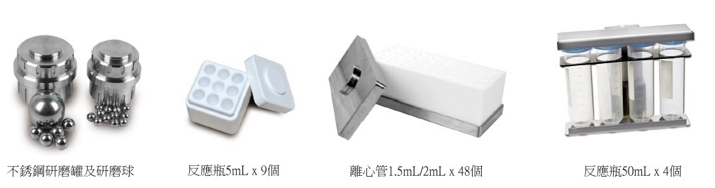 研磨罐尺寸:10mL, 25mL 35mL, 50mL